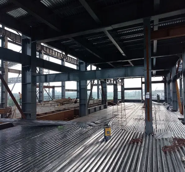 Hybrid steel concrete Composite construction is a better option due to the strength and stiffness enhancement which is achieved with an efficient use of materials. Composite construction is efficient because concrete is good in compression and steel is good in tension. Structurally, When these two materials combined, then their strengths can be exploited to result in a highly efficient and lightweight design. The reduced self-weight of composite elements have a knock-on effect by reducing the forces in those elements supporting them, including the foundations. Composite construction is robust and does not require tight tolerances, making the system quick to construct. The floor depth reductions that can be achieved using composite construction can also provide significant benefits in terms of the costs of services and the building envelope.